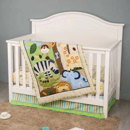 3Pcs Embroidered crib bedding set Crib Sheet Set Nursery Soft Infant Newborn (Comforter Fitted Sheet Crib Skirt)
