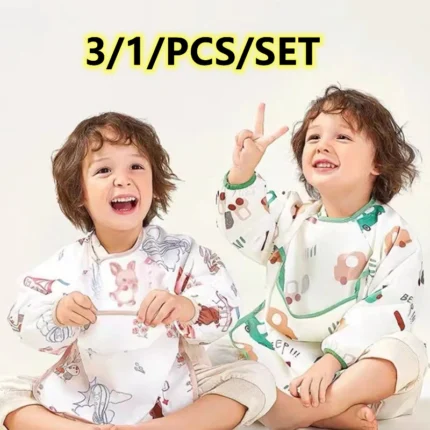 3PCS/1PCS Smock Bibs Waterproof Long-sleeved Eating Feeding Art Apron Newborn Toddler Burp Cloths Fit 0-3 Years