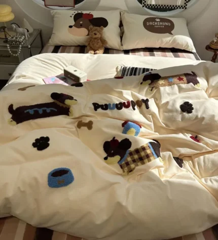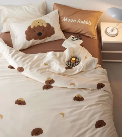 Cute towel embroidery dog cat brown green bedding set,twin full queen king cotton home textile bed sheet pillow case quilt cover