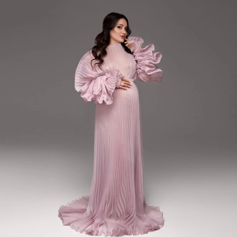 Elegant Pregnancy Maternity Dress Babyshower Party Wear Pink Maxi Prom Gowns Pleated Sleeves Maternity Dresses for Photoshoot