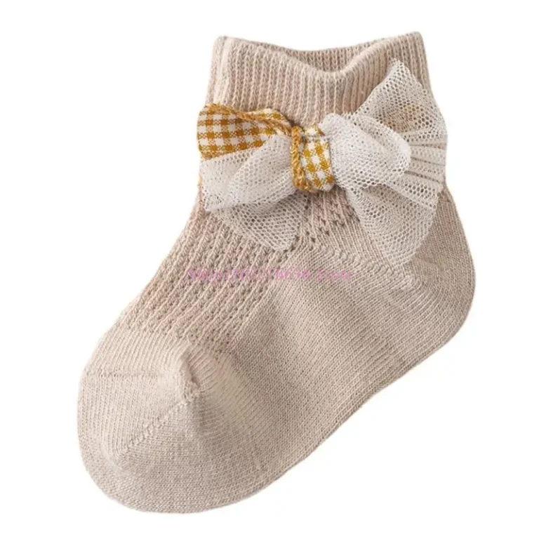 R6FD Girls Ankle Socks Breathable Cotton Mesh Socks with Bowknot for Dress Up and Casual Wear Infants Short Dance Socks