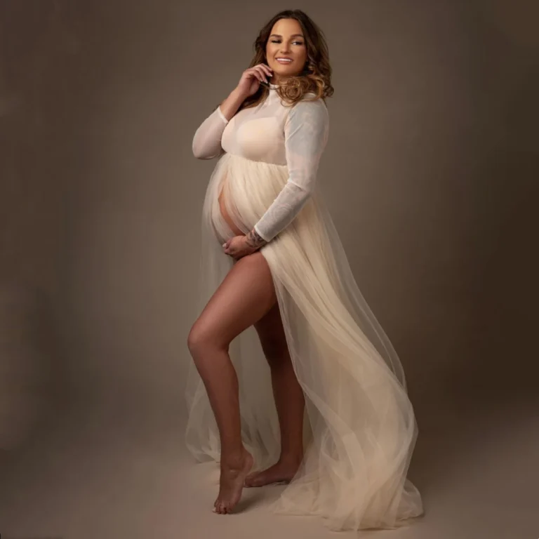High Neck Maternity Photogrpahy Props Long Dress Transperant Tulle Pregnancy Photo Session Dress