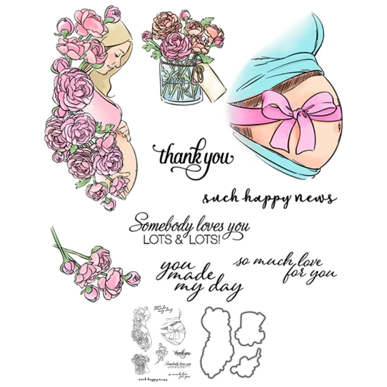 MangoCraft Great Mother Pregnant Woman Cutting Dies Clear Stamp Set DIY Scrapbooking Metal Dies Cut Silicone Stamps For Cards