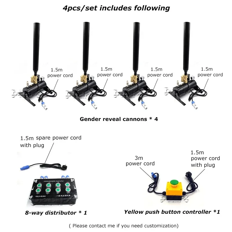 Gender Reveal Boy or Girl Electronic Spray Confetti Powder Cannon Four Tubes Remote Control Gender Reveal Outdoor Wedding Party