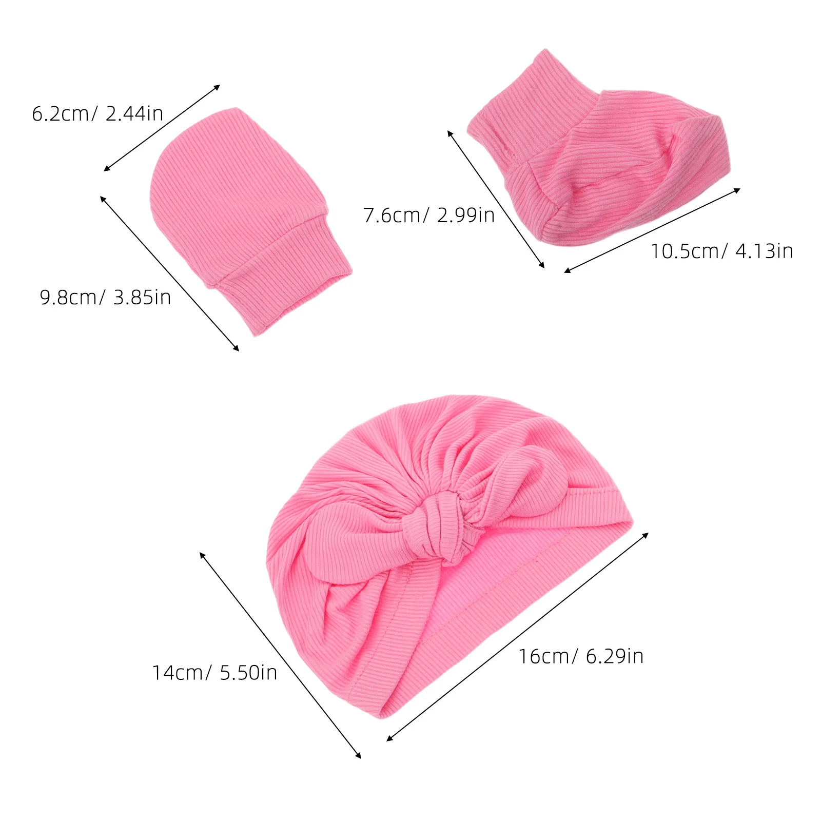 1Set Newborn Protective Set Hat Mittens Socks Soft Cotton Warm Antiscratch Comfort Infant Daily Wear Turban Hat