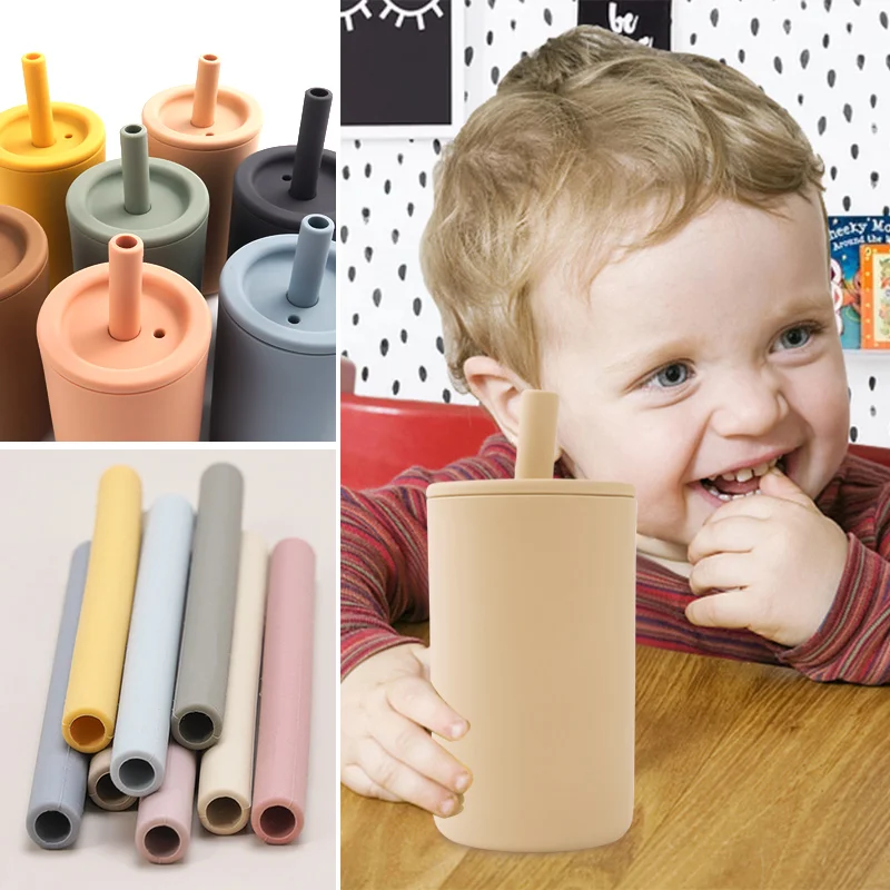 1PC Kids Learn to Drink Cup Portable Cartoon Learning Feeding Straw Cup Food Grade Silicone Water Bottle Children's Tableware