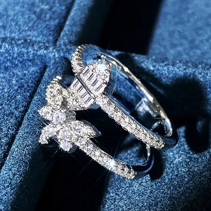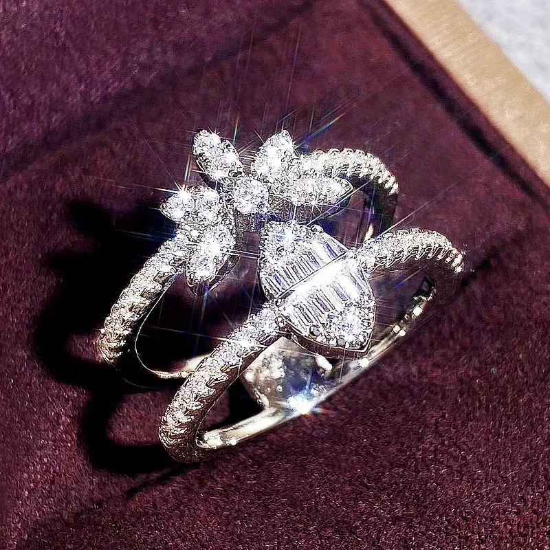 2025 New High End Sweet Shining Cubic Zirconia Ring for Women with Double Layered Design, Horse Eye Shining Design, and Jewelry