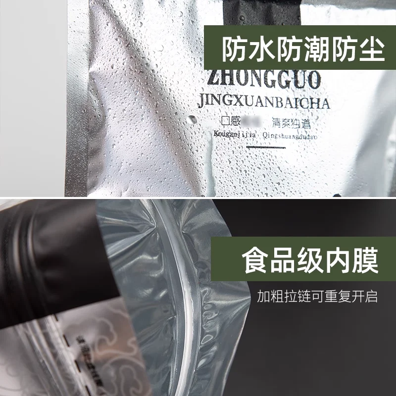 250g/500g Chinese Bulk ShouMei Bai Cha Zipper Bags Fuding BaiHao Silver Needle White Tea Recyclable Sealing Packing Gift Bag quantity