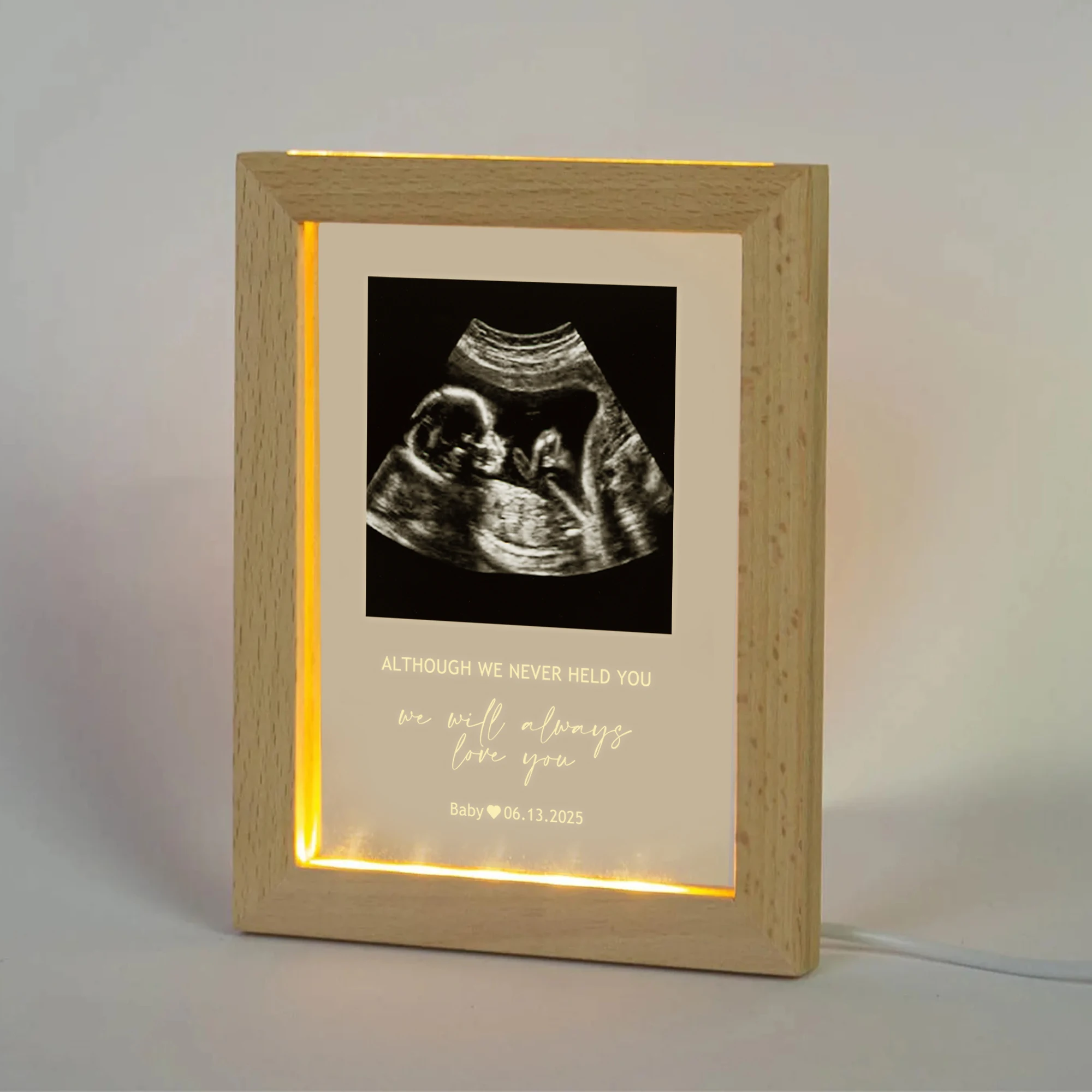 2D Flat Custom Photo Ultrasound Picture LED Acrylic Night Light Wood Photo Frame 21x17cm Bedroom Gift Home Decoration