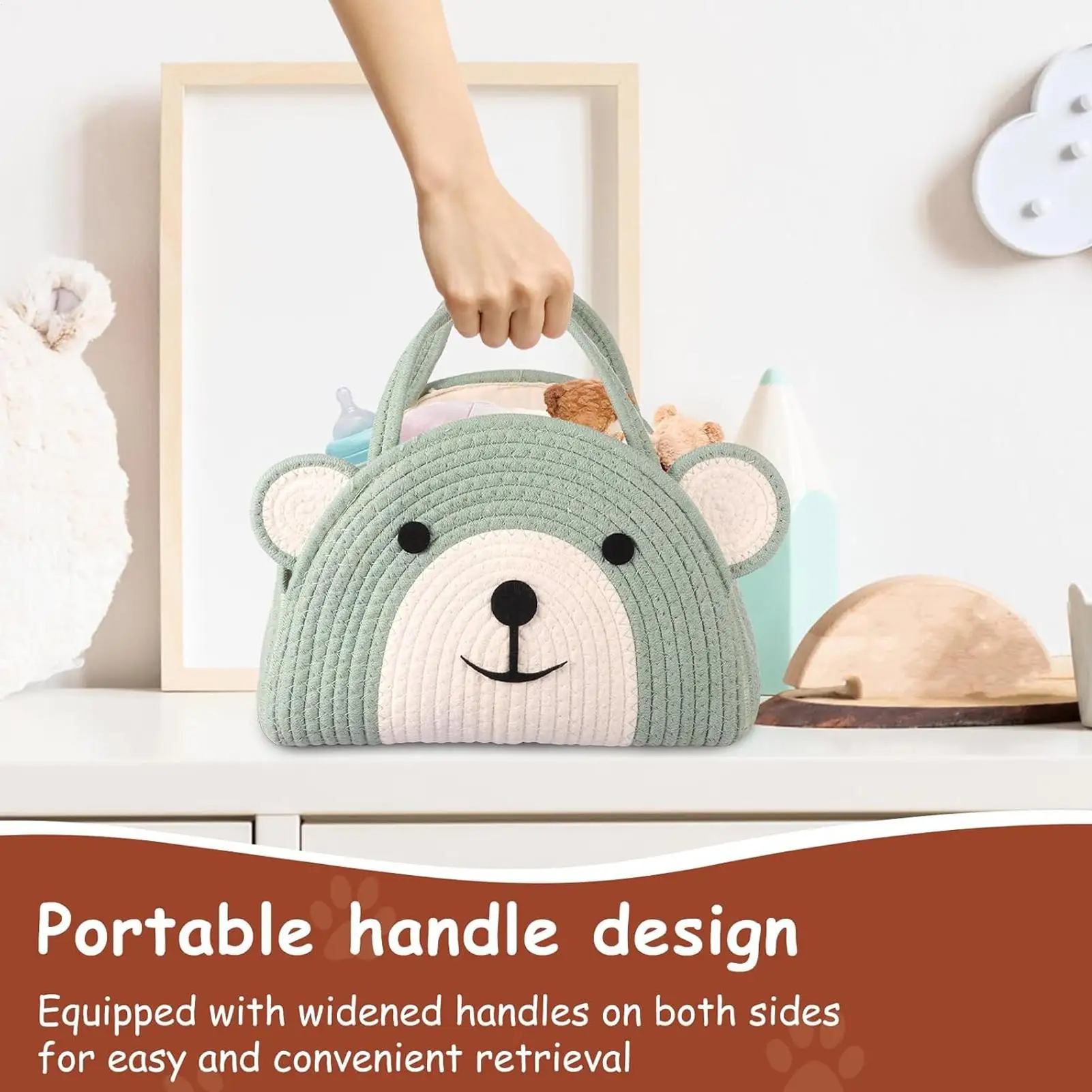 Diaper Organizer Portable Bear Cotton Rope Bin Toddler Diaper Storage Bin For Girls Boys Kids Christmas Shower Party