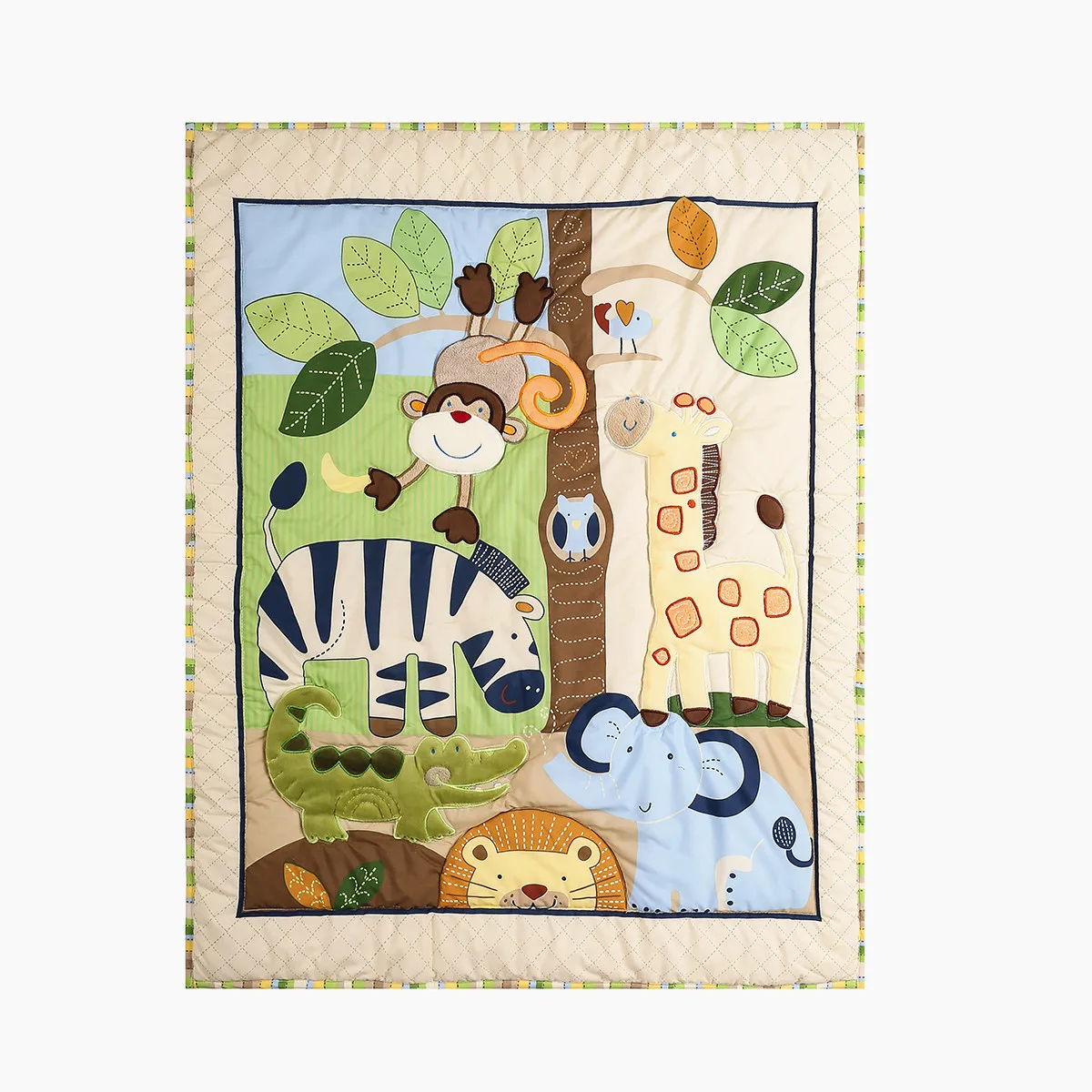 3Pcs Embroidered crib bedding set Crib Sheet Set Nursery Soft Infant Newborn (Comforter Fitted Sheet Crib Skirt)