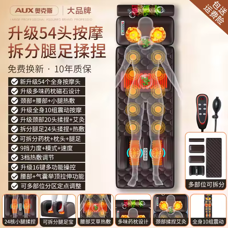 Relax your entire body with this 54-head infrared heating massage cushion, designed to relieve pain, reduce stress, and improve circulation. Featuring vibrating massage points and soothing infrared heat, it targets the neck, back, waist, and thighs. Compatible with 110V/220V and perfect for beds, chairs, and sofas, this cushion delivers full-body comfort anytime.