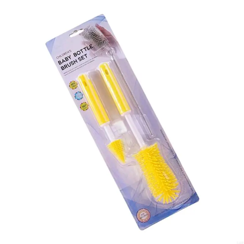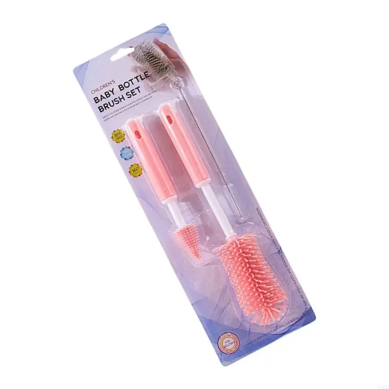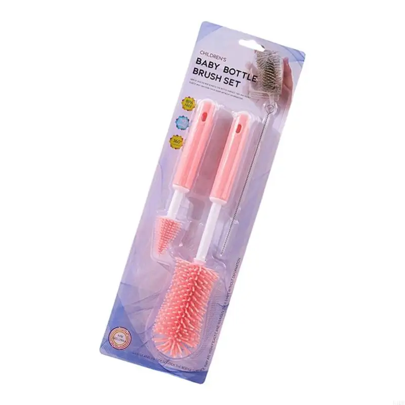 54DF Bottle Cleaning 3PCS Silicone Brushes Long Handle Detachable Straw Nipple Cleaners for Feeding Bottles