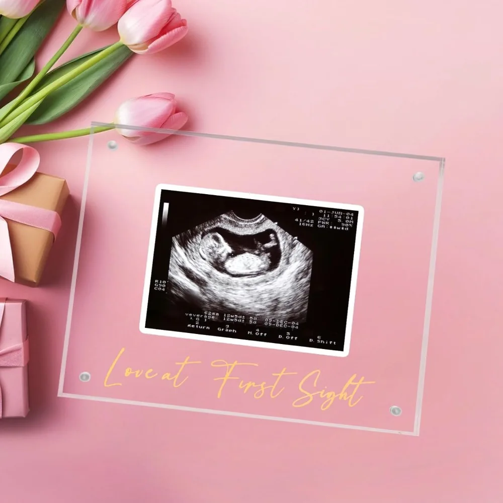 Acrylic Ultrasound Picture Frame, Bright Photo Frame, Sonogram Love at First Sight Keepsake Announcement, Birth Inform