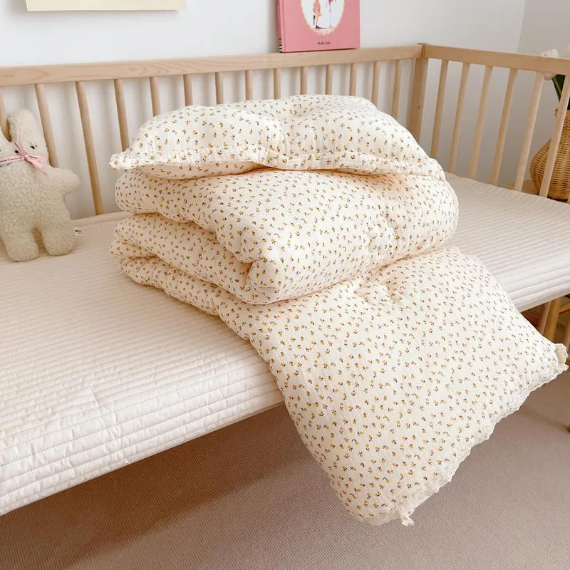 Bedding Quilt Korean Daisy Floral Cotton Kids Infant Children Cot Crib Quilts Autumn Winter Muslin Quilts for Toddlers quantity