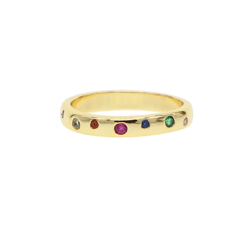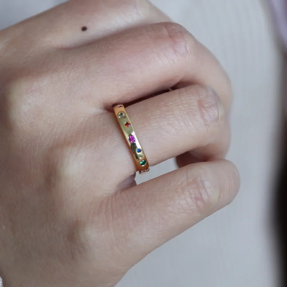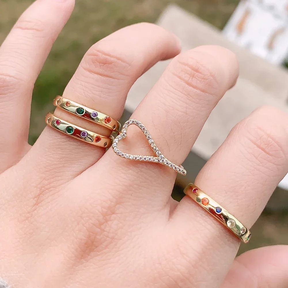 BIG Discount gold color pave rainbow colorful cubic zirconia engagement band rings for women classic trendy female jewelry