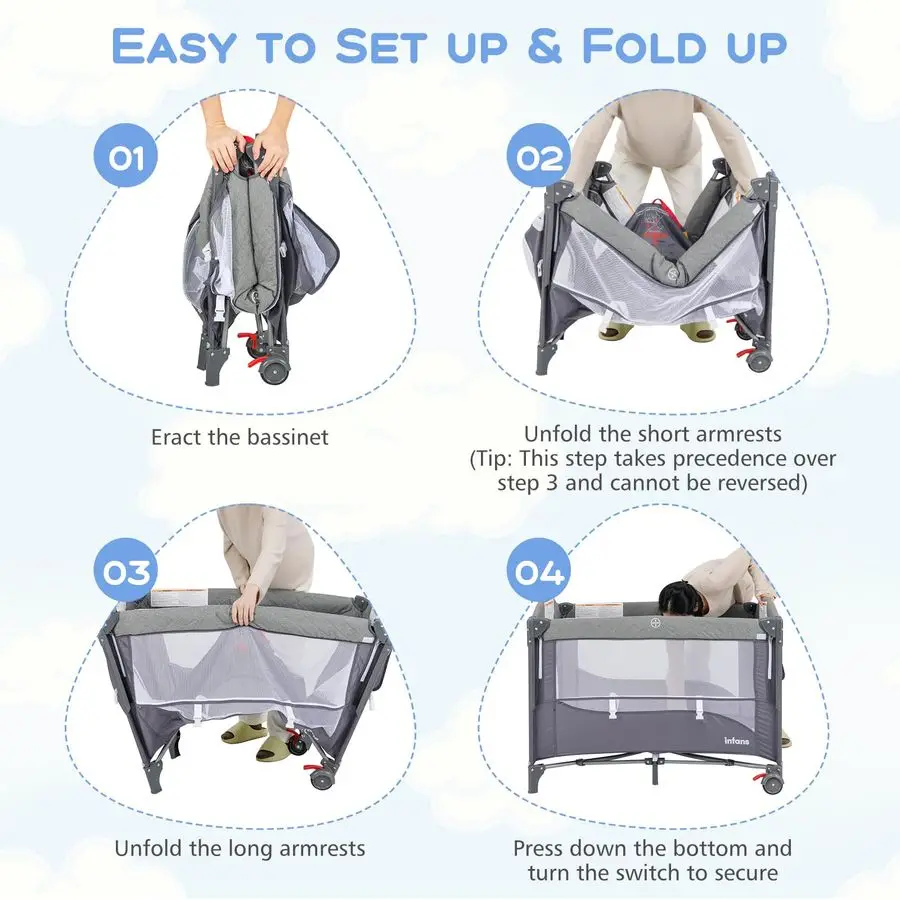 Pack and Play, 5 in 1 Bedside Sleeper with Bassinet, Diaper Changer, Mattress, Carry Bag, Music Box Hanging Toys, Foldable