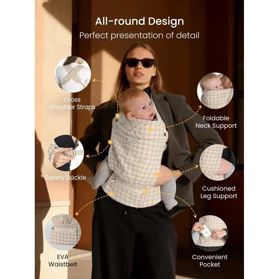Carrier Newborn to Toddler, Lightweight Ergonomic 744 lbs Newborn Carrier with Head Support, Easy to Wear Hands Free Infant