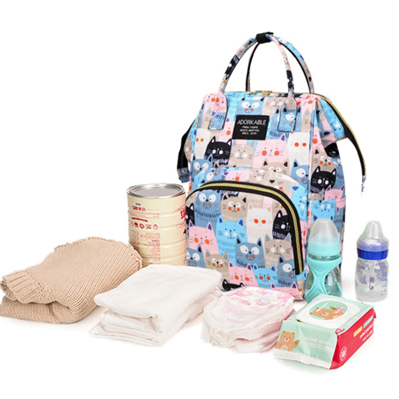 Cartoon Print Mommy Backpack Large Capacity Bottle Storage Bags Diaper Bag Fashion Women’s Backpack Maternity Bag New