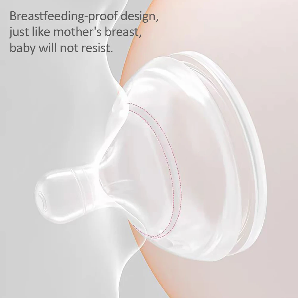 Lightweight and drop-resistant 250ml bottle with cartoon handle and breastmilk silicone nipple, PP bottle for 0-36 babies
