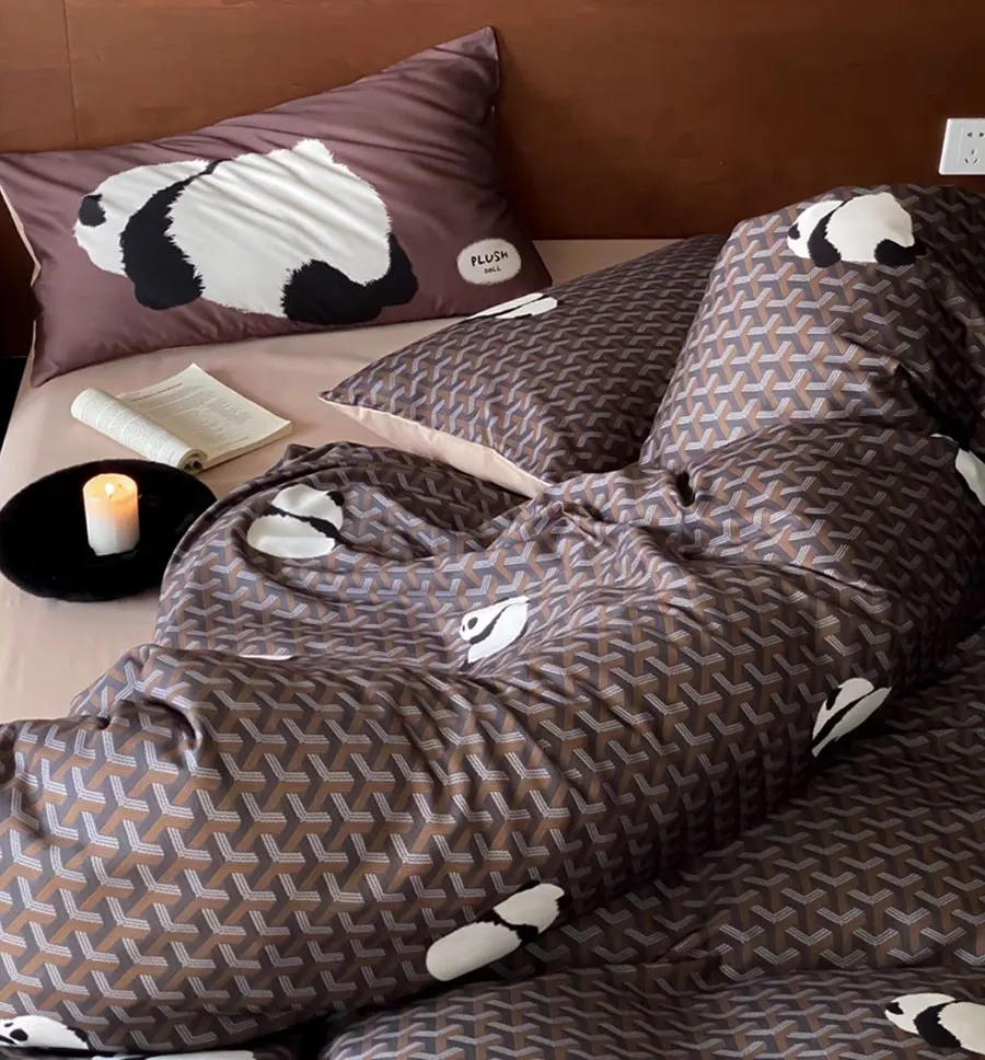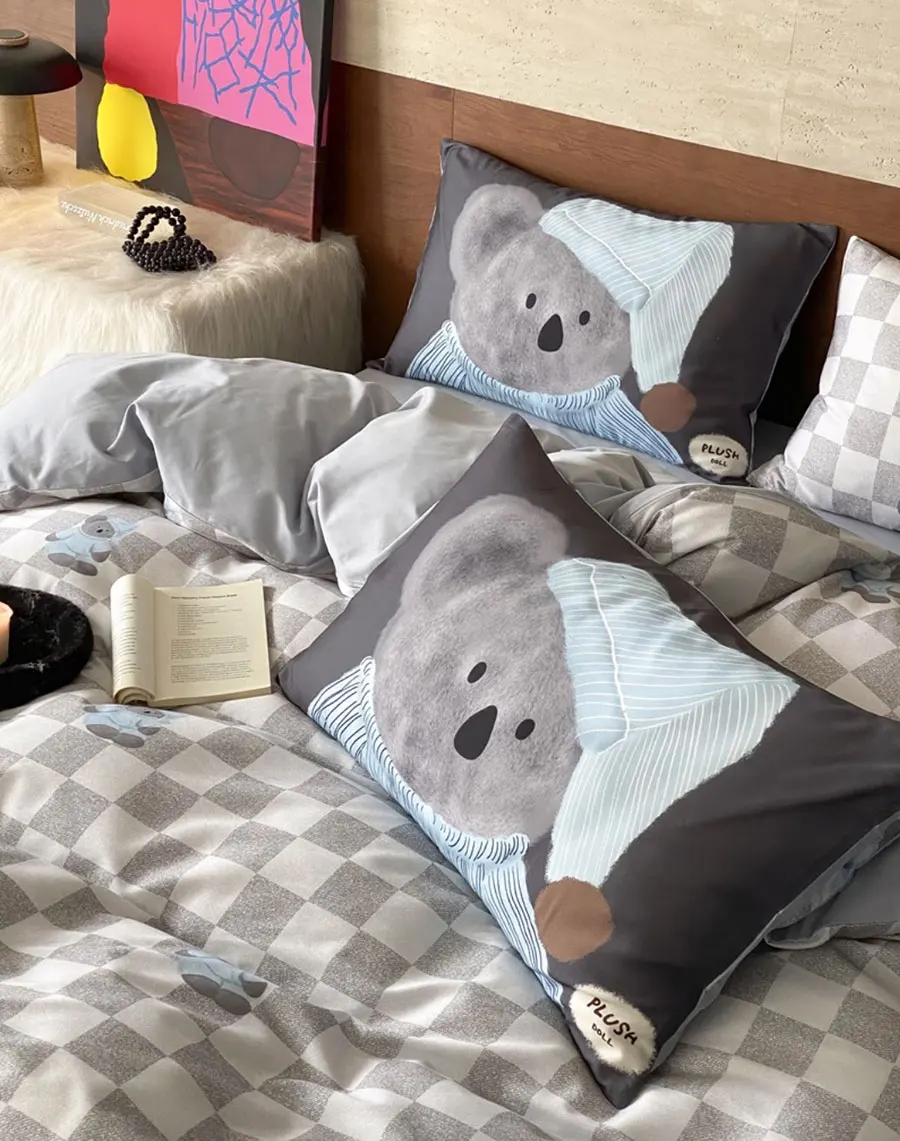 Cute cartoon koala panda dog grey brown bedding set,full queen king sand cotton home textile bed sheet pillow case quilt cover