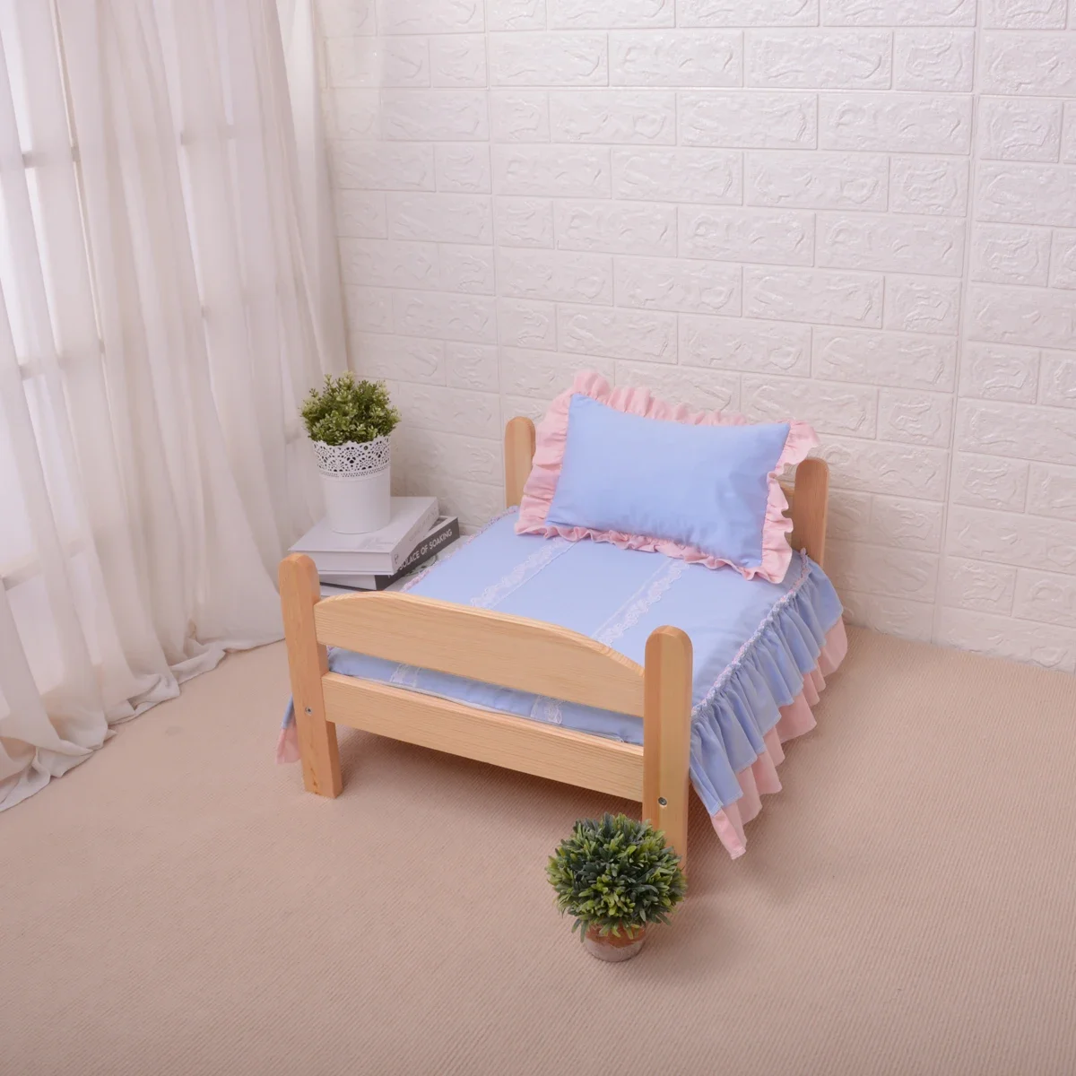 Cute Solid Wood Pet Bed Dog Comfortable Bed Free Full Set of Bedding Pet Supplies Removable and Washable Pet Bed