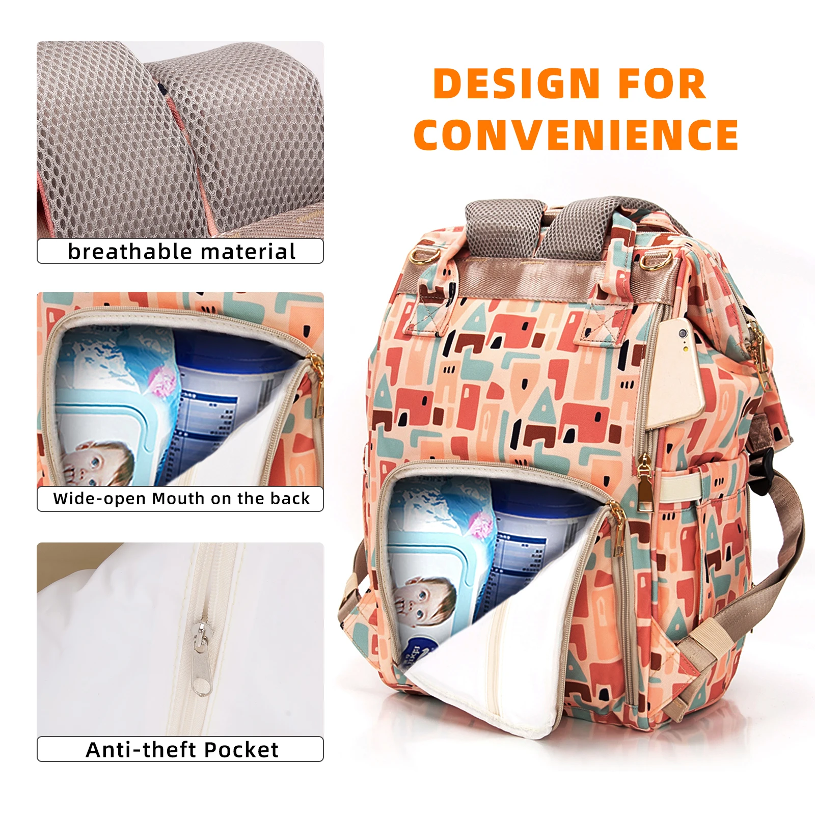 Diaper Bag Backpack, Multifunction Travel Pack Maternity Changing Bags, Large Capacity, Waterproof