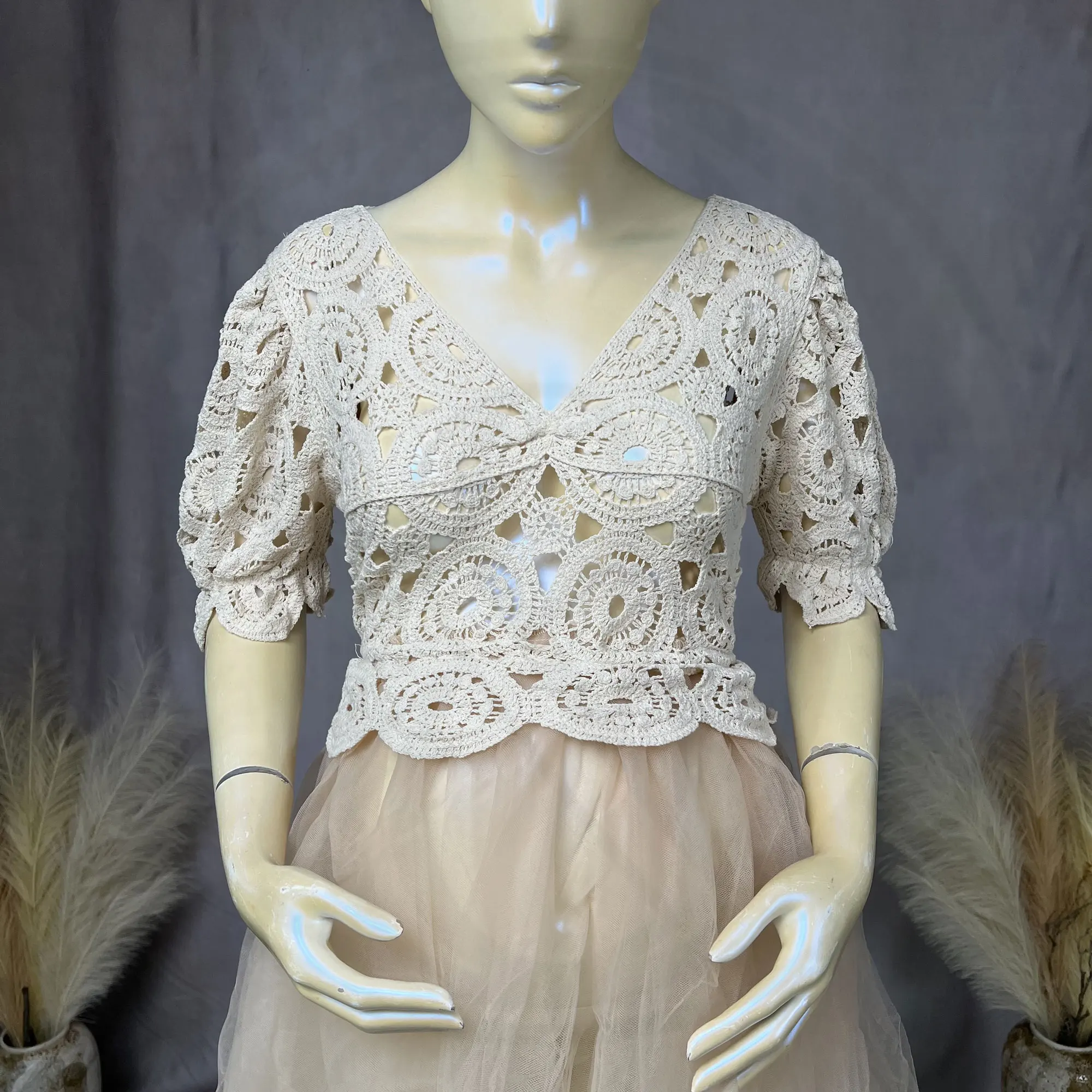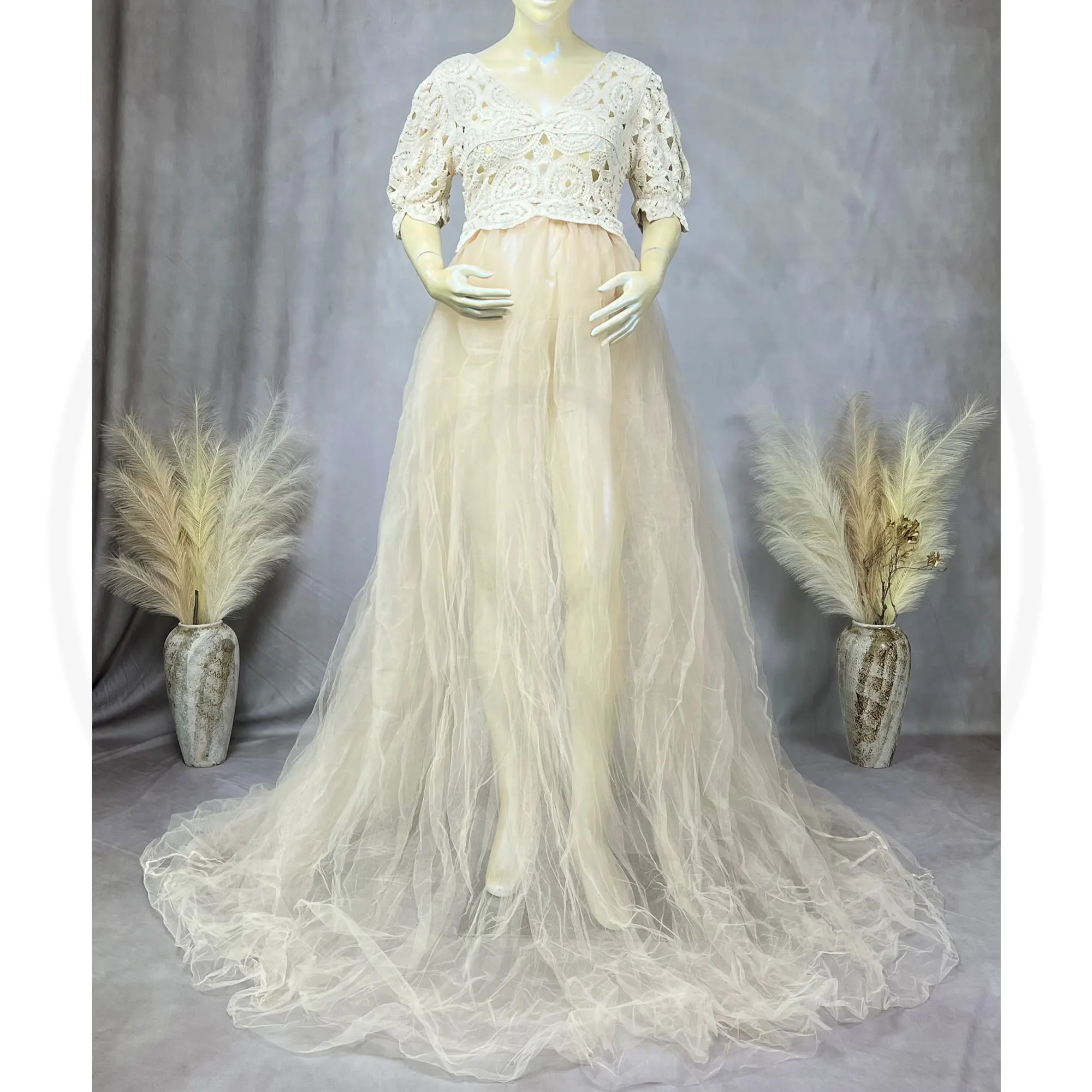 Don&Judy Bohe Short Sleeves Tulle Summer Dress for Women Maternity Dresses Photoshoot Pregnancy Formal Wear Gowns Photo Shoot