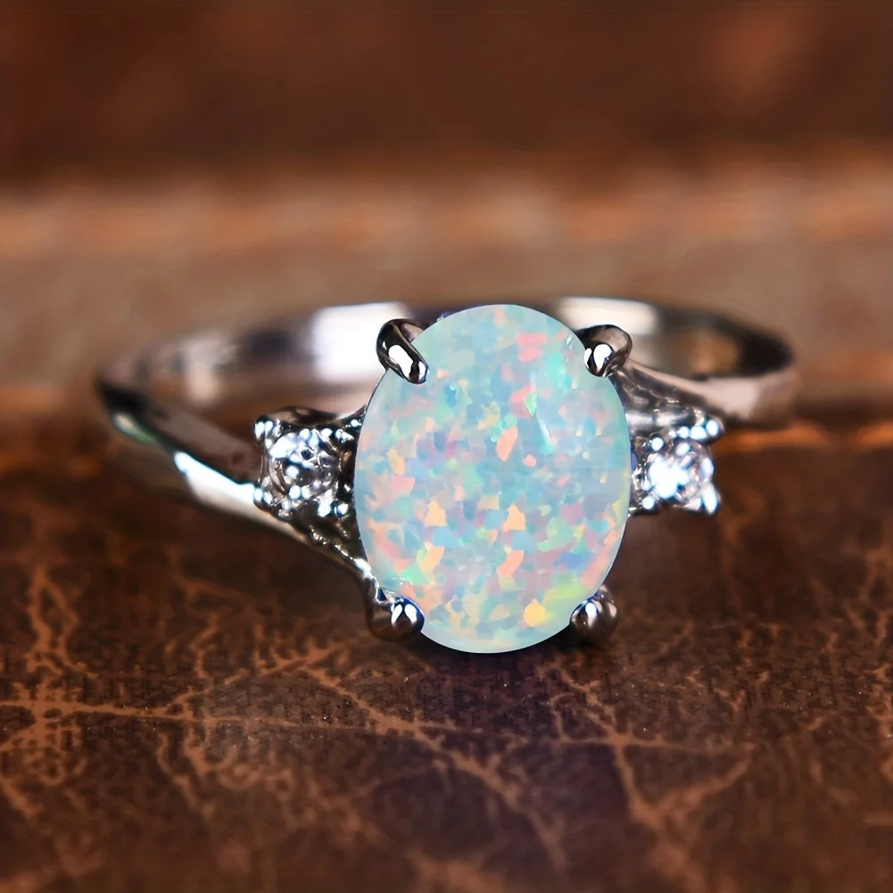 Elegant Promise Ring Inlaid Oval Stone Plated Engagement Wedding Jewelry Symbol Of Eternity