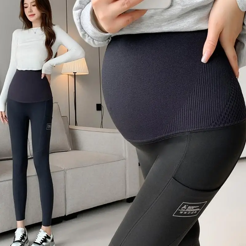 Fleece Lined Maternity Pants High Cinched Ankle Length Legging Safe Pregnancy Wear for Warm Support During Pregnancy A2UB