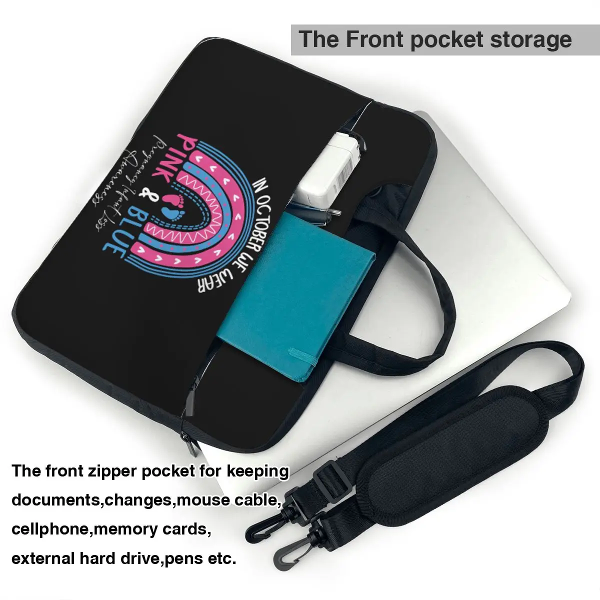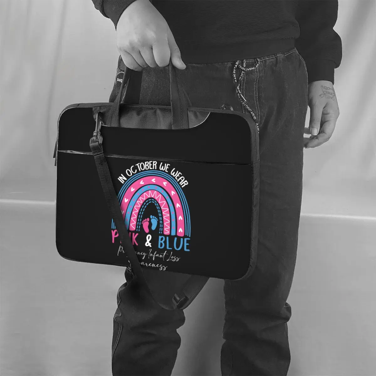 In October We Wear Pink And Blue Pregnancy Infant Loss Boho Crossbody Laptop Bag Case Computer Bag 13 14 15.6 Inch NotebookPouch