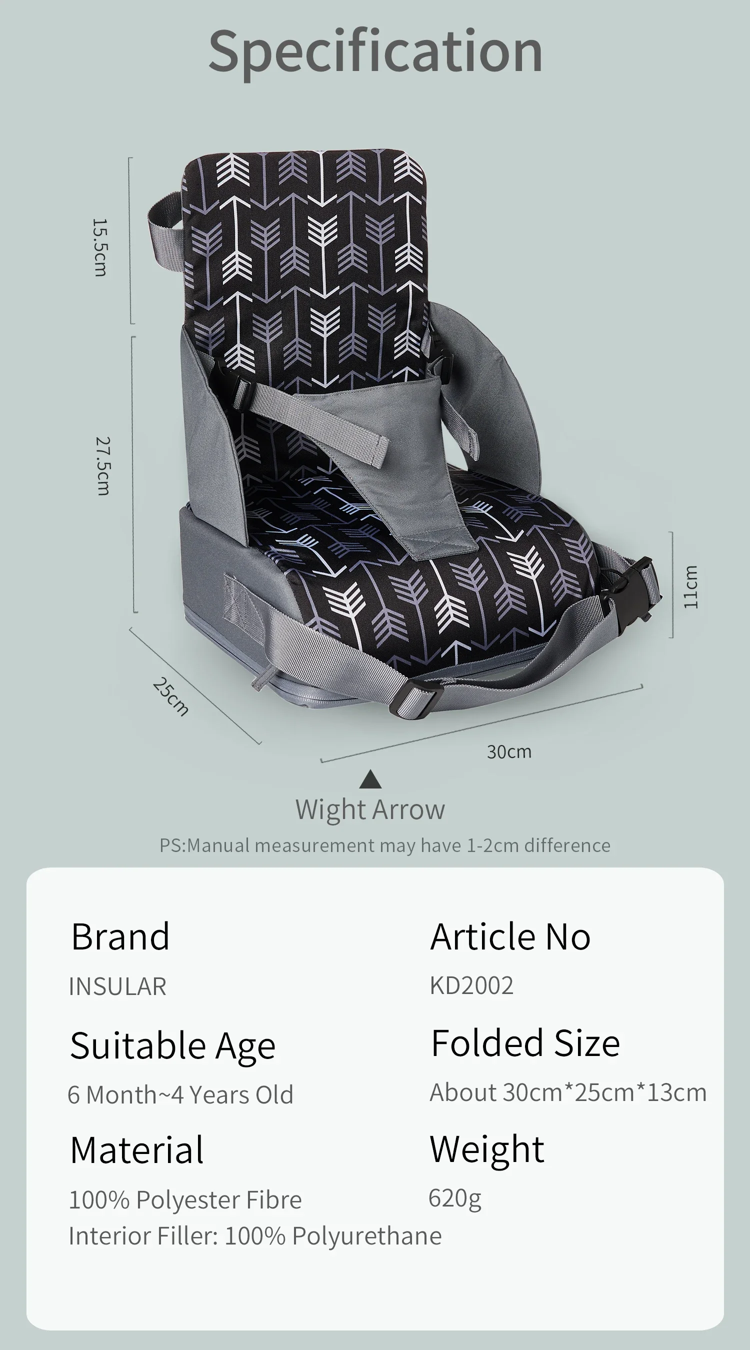 INSULAR Portable Foldable Anti slip Children’s Seat High Cushion Dining Chair High Cushion Children’s Travel Supplies