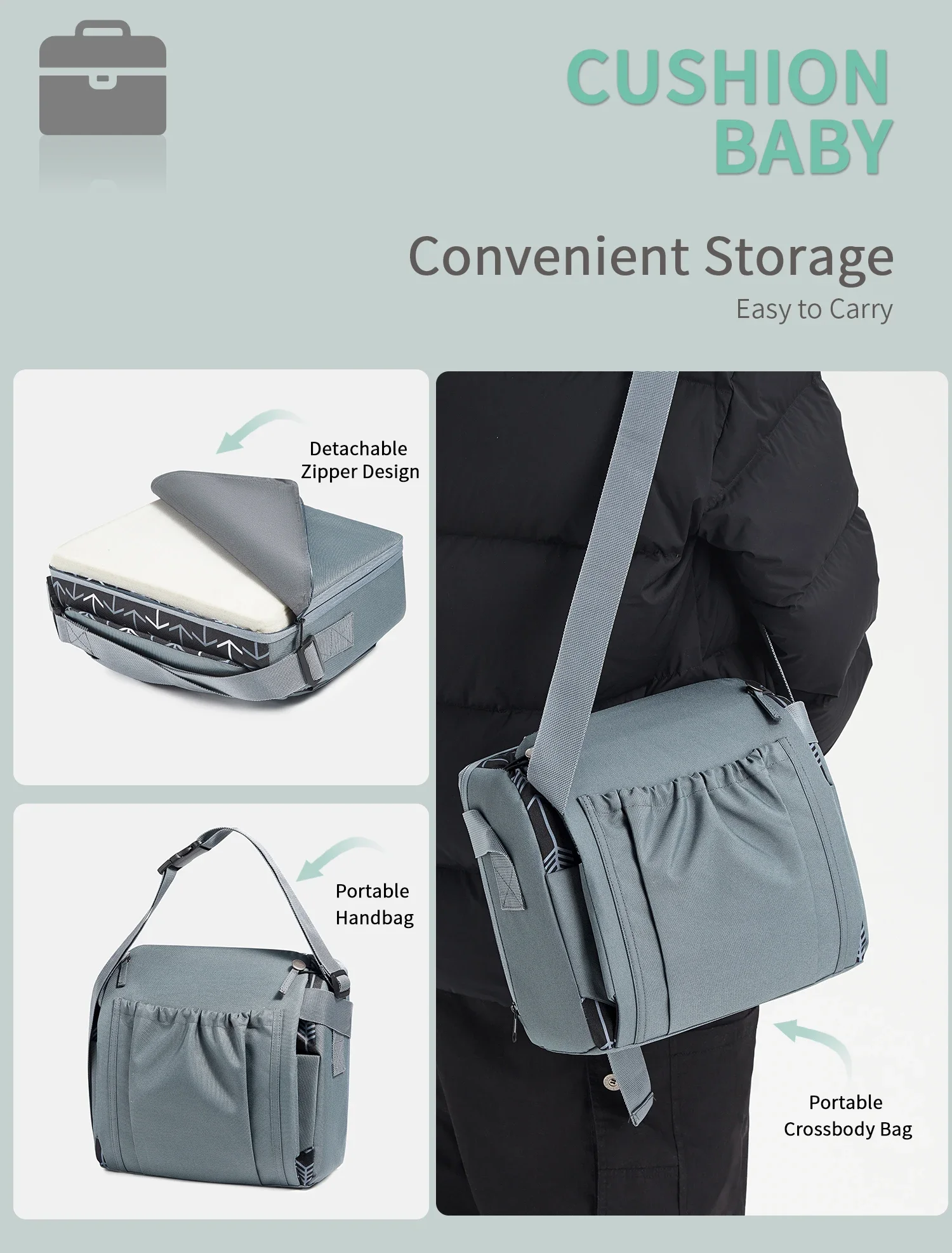 Portable Booster Seat Diaper Bag Travel Toddler Convenient Cushion Kid Chair Washable Straps Safety Buckle Muti-functional