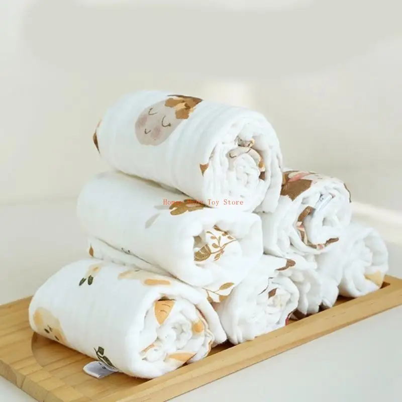 J0PF Drooling Bib Soft Breathable Wash Cloth Print Burping Cloth Face Towel
