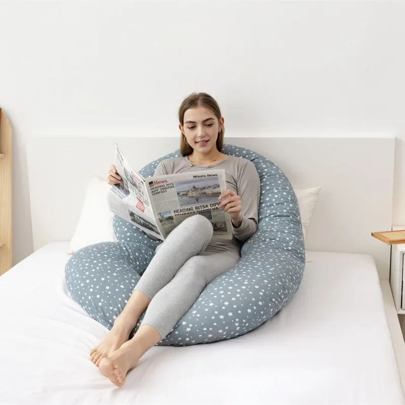 C-Shaped Pregnancy Pillow Star Pattern: Supportive Belly And Back Pillow For Side Sleeping, Solid Color Maternity Pillow