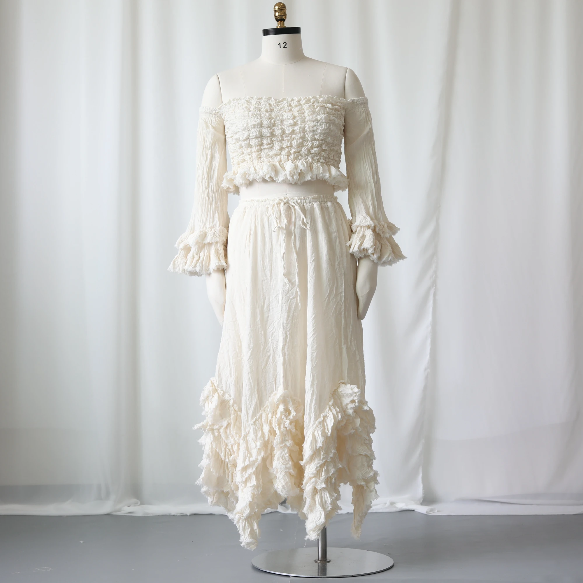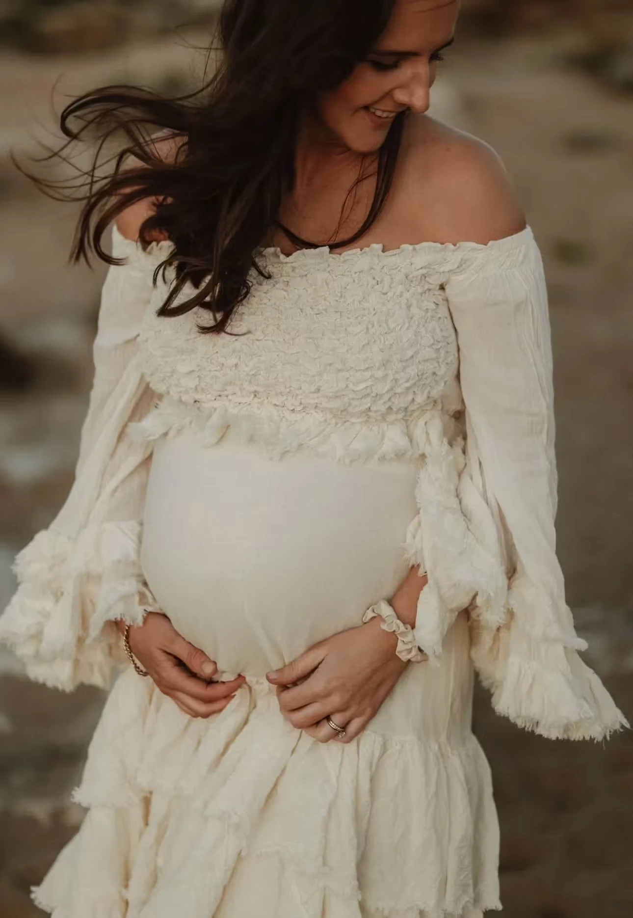 Maternity Photoshoot Dress Shed Gypsy Set Women’s Boho Western Two-Pieces Cream Layered Ruffle Maxi Skirt For Pregnancy Session