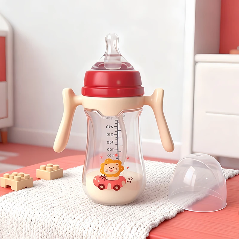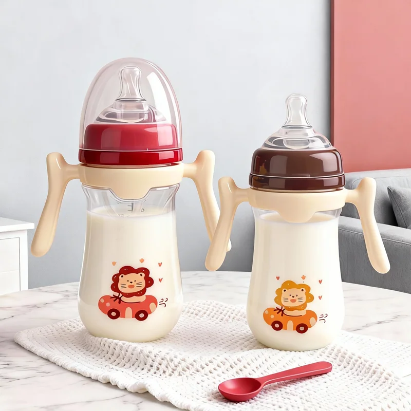 New 0-36 months PP bottle 280ml with handle Breastmilk-like design Soft milk pulling