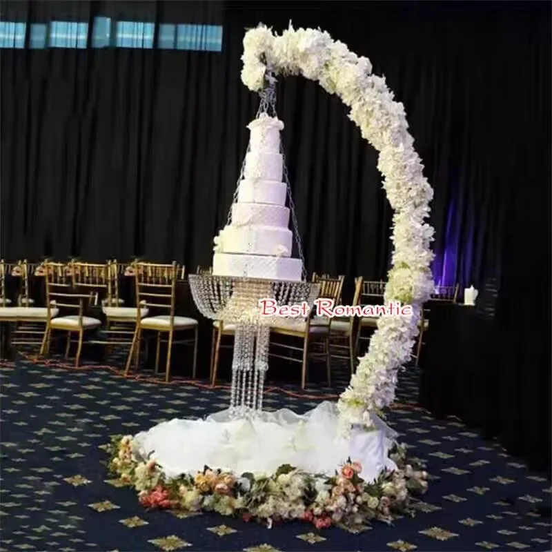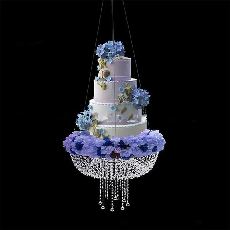 New Luxury Clear Acrylic Crystal Chandelier Style Drape Suspended Cake Stand Dessert Rack for Shower Wedding Decoration