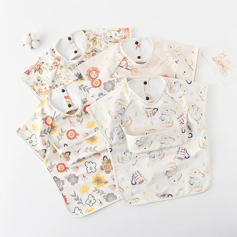 Newborn Bibs Blouse Waterproof No-sleeved Reverse Dressing Infant Eating Clothes Apron Bib Protective Clothing