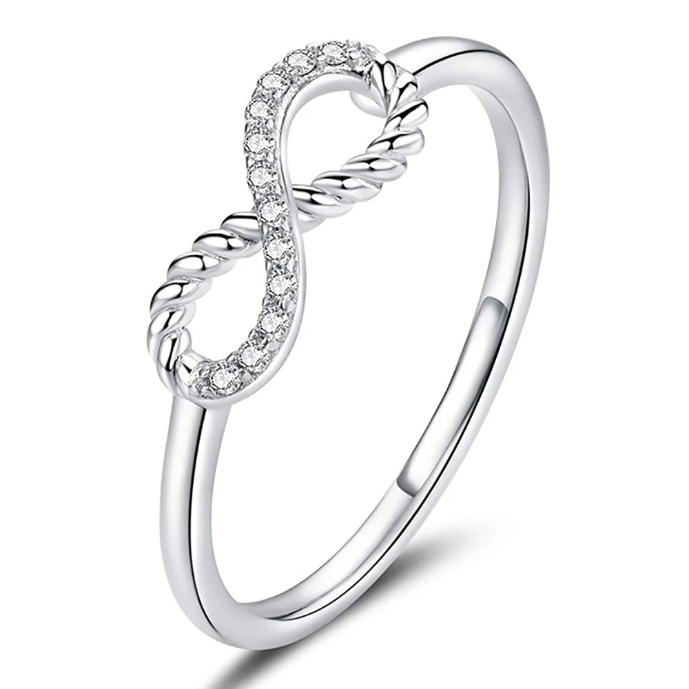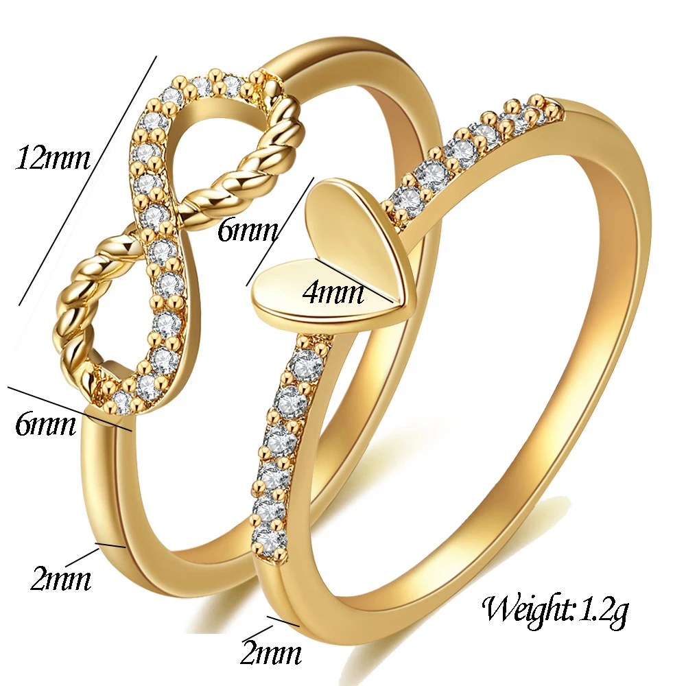NIBASTAR Infinity Endless Love Heart Ring For Woman Twist Crystal Wedding Rings For Lady Simple Copper Jewelry Gift