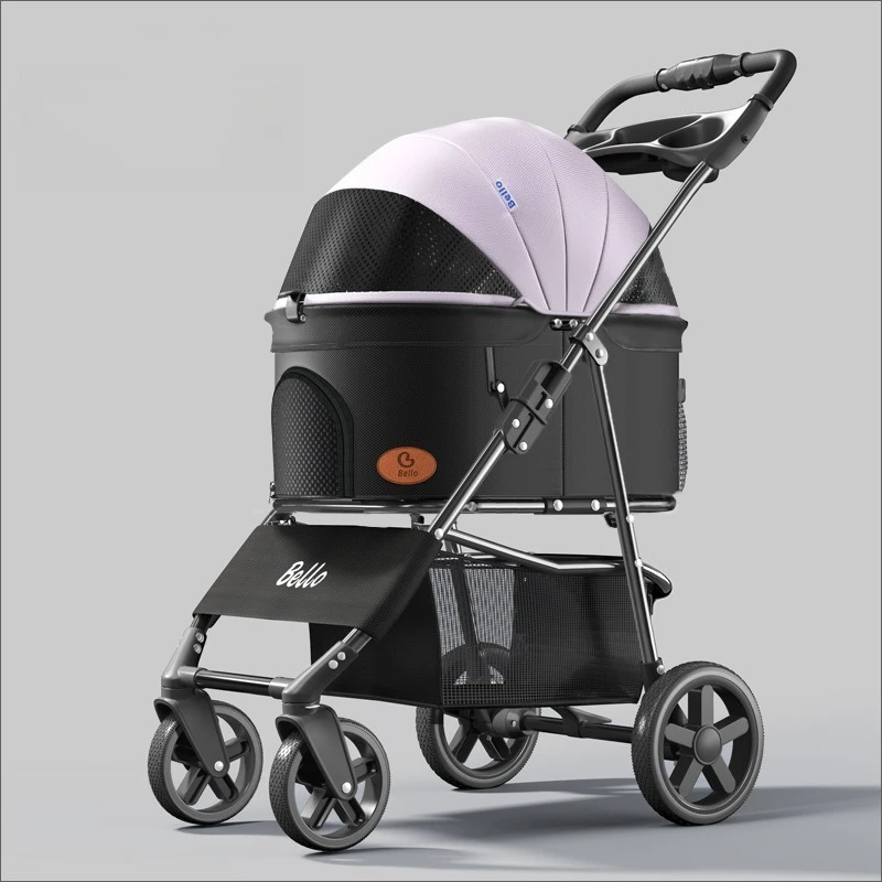 One Button Easy Fold Lightweight Pet Stroller with Carry Bag Cat Dog Travel Cart for Small Medium Pets White Purple Color Option