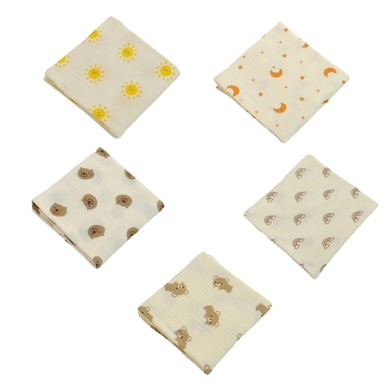 Soft and Comfortable Blanket for Newborns Cartoon Floral Print Muslin Diaper Swaddles Wrap Cloth Nursing Towel