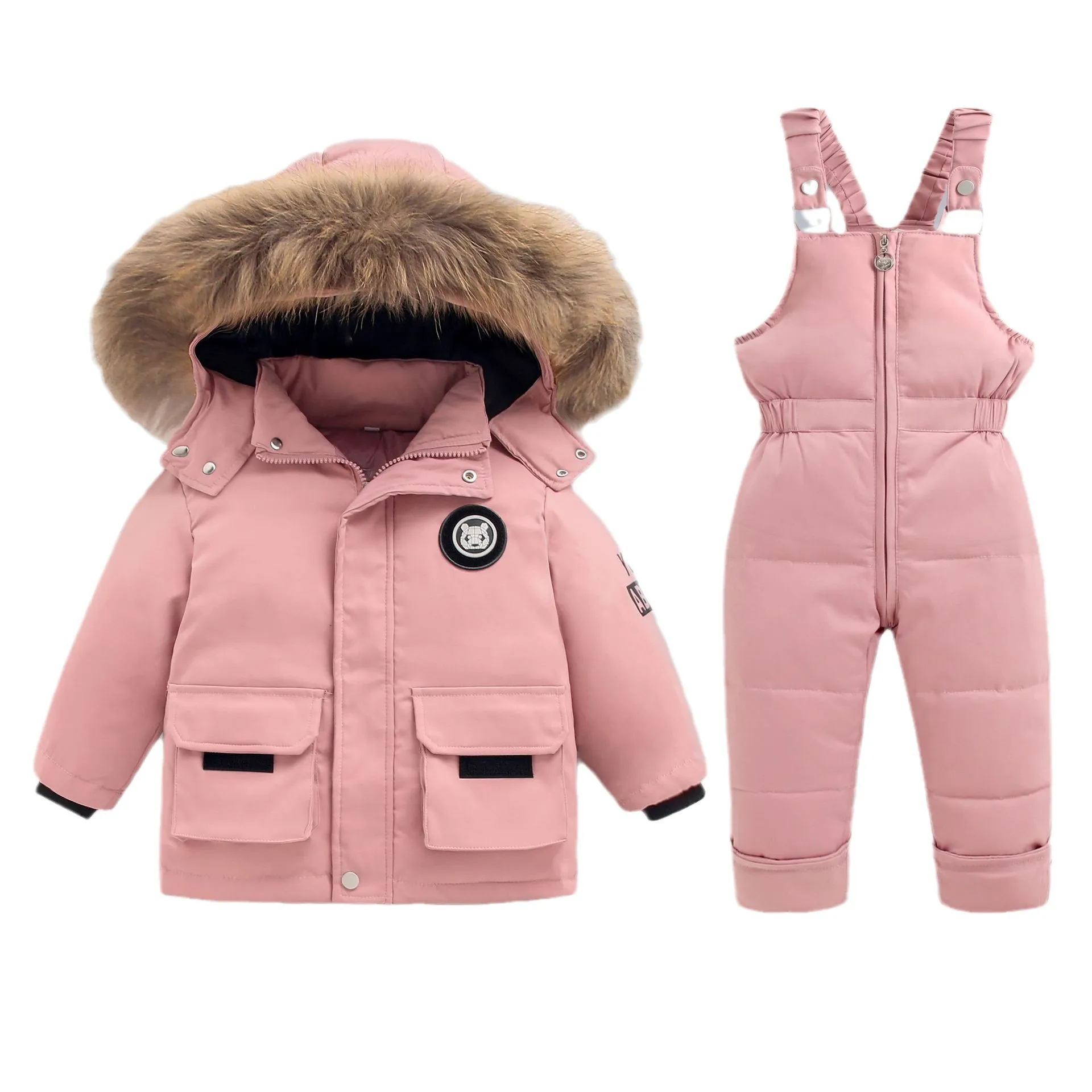 Two-piece Set Children Outdoor artificial Down Jacket Winter Clothing Ski Wear Jumpsuit Clothing Warm Suit Infant Snowsuit coat
