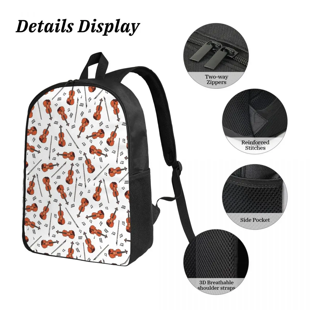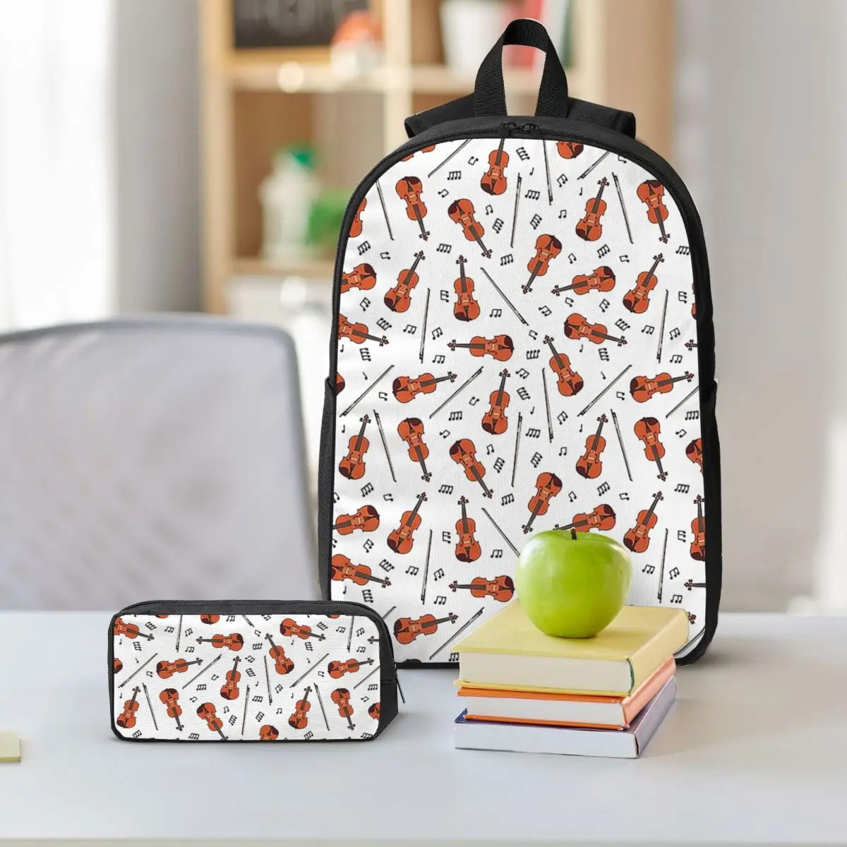 Violin And Music Notes Backpack Student Boys Girls BookBag School Bag Laptop Shoulder Bags 3ps Insulated Lunch Bag Pencil Case