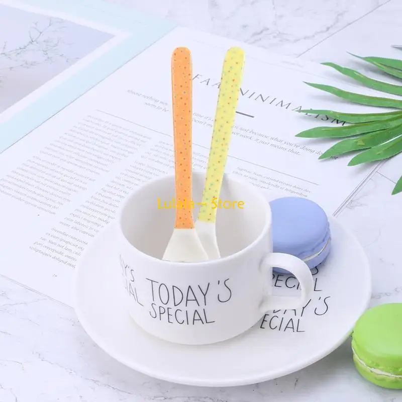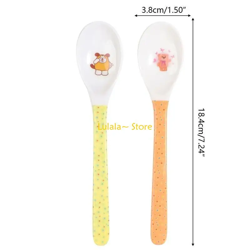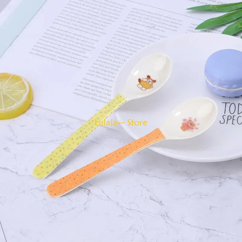 Y4QA Safe Plastic Cartoon Printing Kids Feeding Spoon Children’s Long Soup Coffee Spoon Dinnerware Random Color