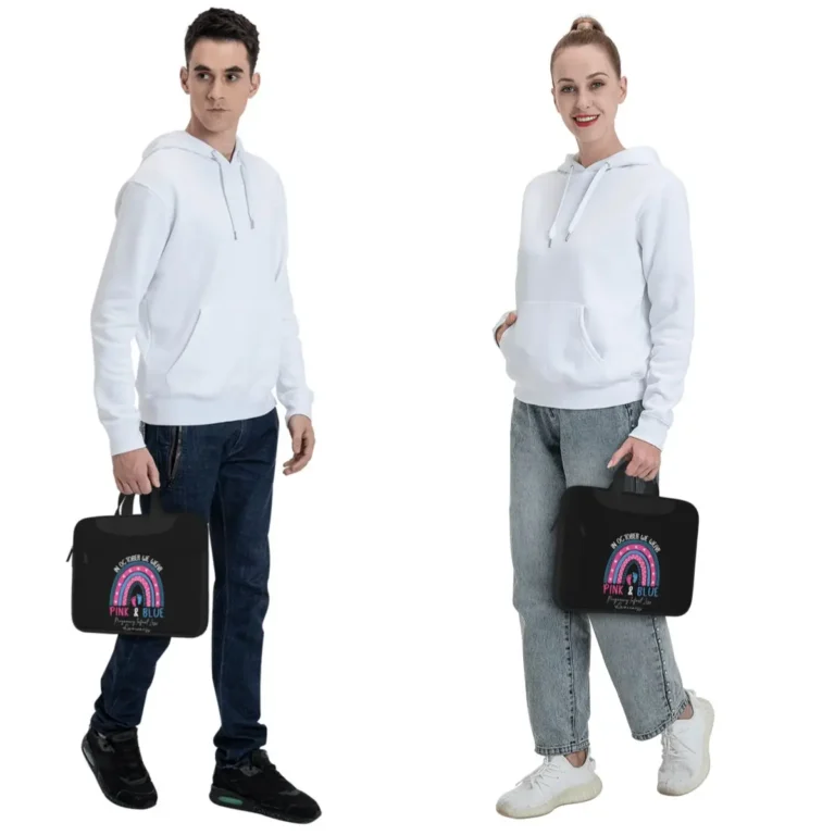 In October We Wear Pink And Blue Pregnancy Infant Loss Boho Crossbody Laptop Bag Case Computer Bag 13 14 15.6 Inch NotebookPouch