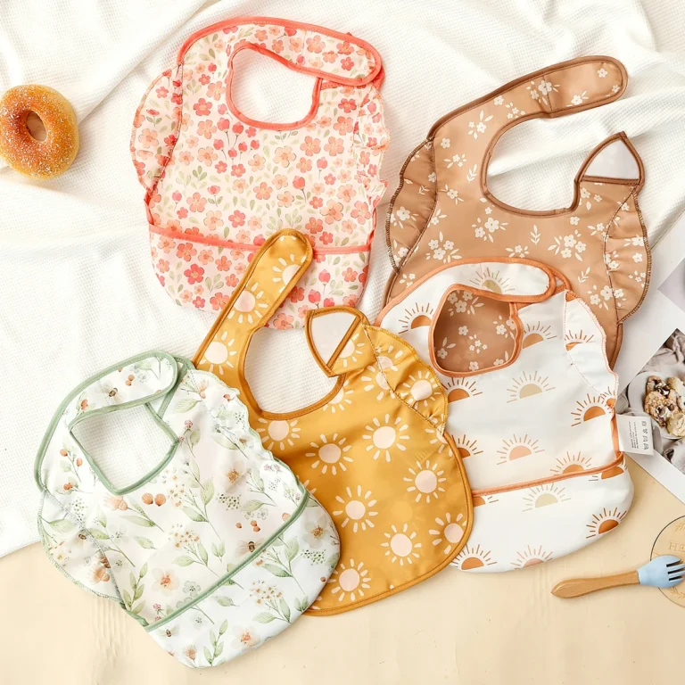 Elinfant 2-Pack Feeding Bibs,Easy-Clean Burp Cloth with Adjustable Closure and Pocket, Mixed Colors,Eating Bibs Aprons Smocks