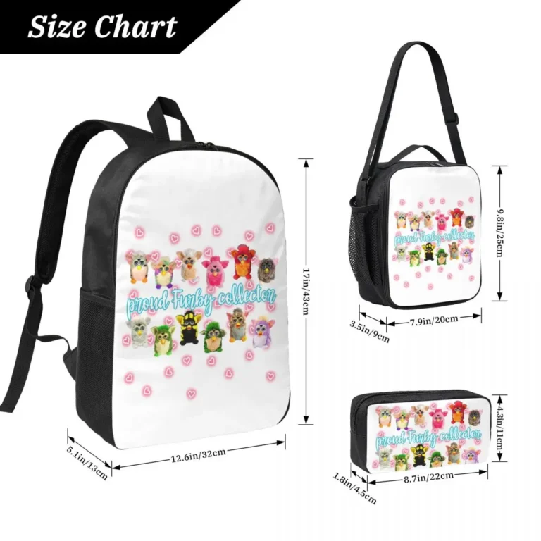 Proud Furby Collector Backpack Student Boys Girls BookBag School Bag Computer Shoulder Bags 3ps Insulated Lunch Bag Pencil Case