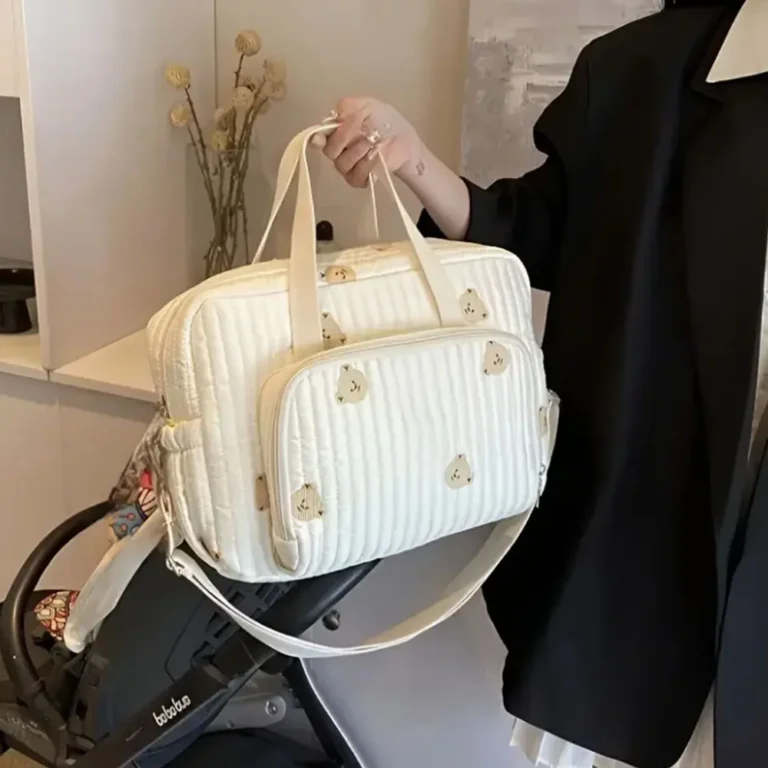 Nylon Crossbody Chic Bear & Tulip Embroidered Diaper Bag with Stroller Clip for Youngsters Travel Essentials